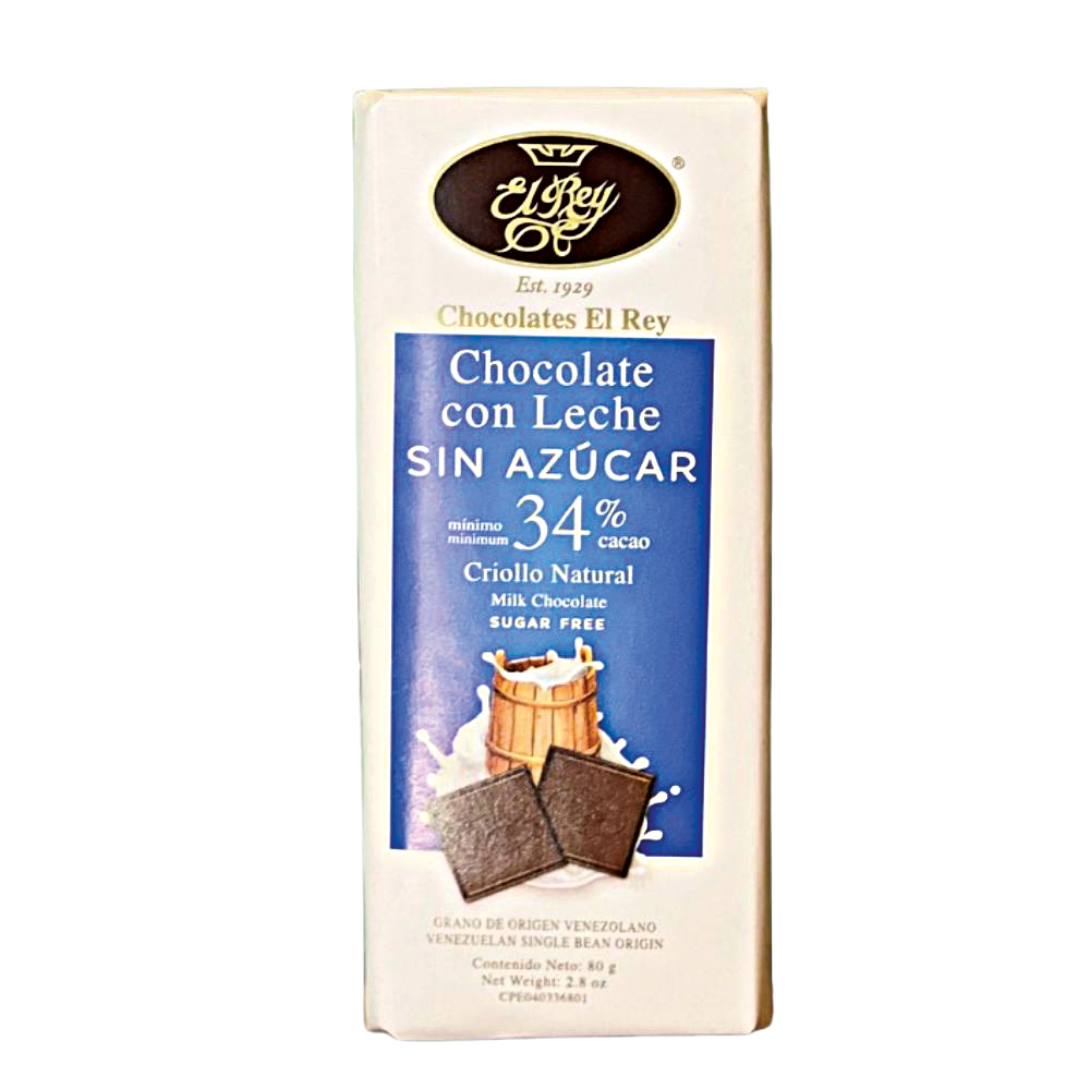 Chocolates El Rey Chocolate Con Leche Sin Azucar 34% Tab 80gr