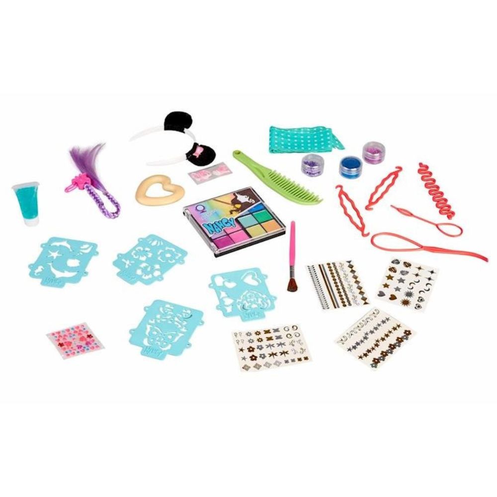 - Juego de peinados más completo de Nancy, incluye accesorios de belleza para hacerle infinidad de looks especiales y divertidos con diferentes peinados en su pelo.