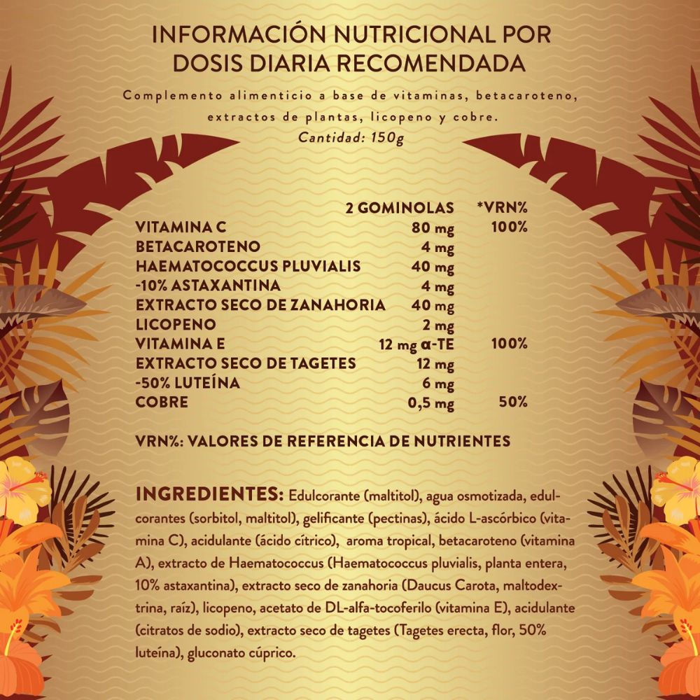 - Protección frente al daño solar: Antioxidantes como el licopeno y el haematococcus pluvialis ayudan a proteger la piel de los radicales libres.