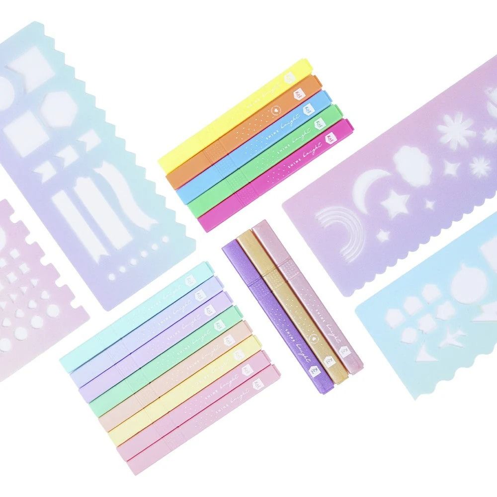Kiut Kit De Resaltadores Pastel+Neón+Glit+Plantillas