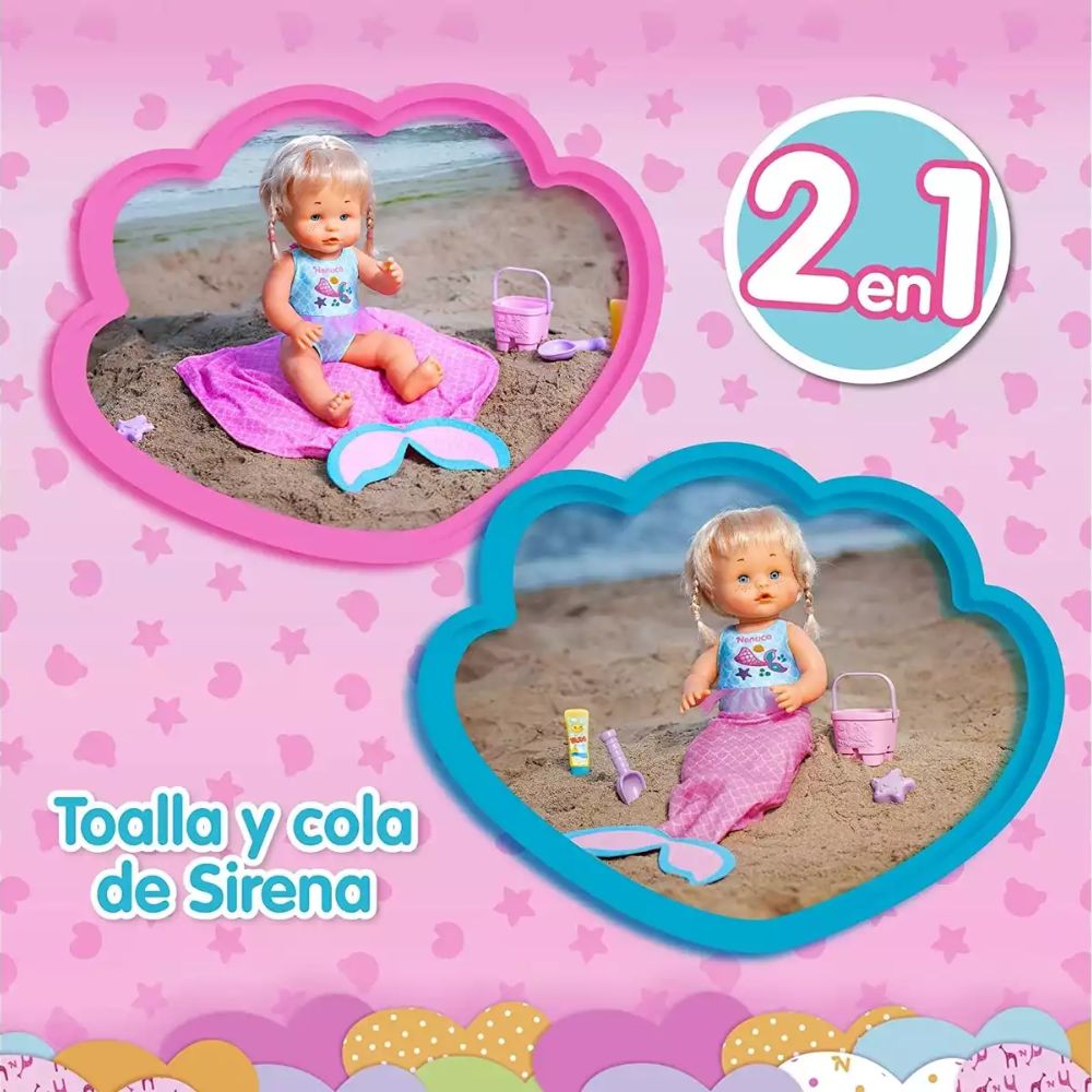 - Nenuco viene con una toalla de playa que se convierte en una cola de sirena.
