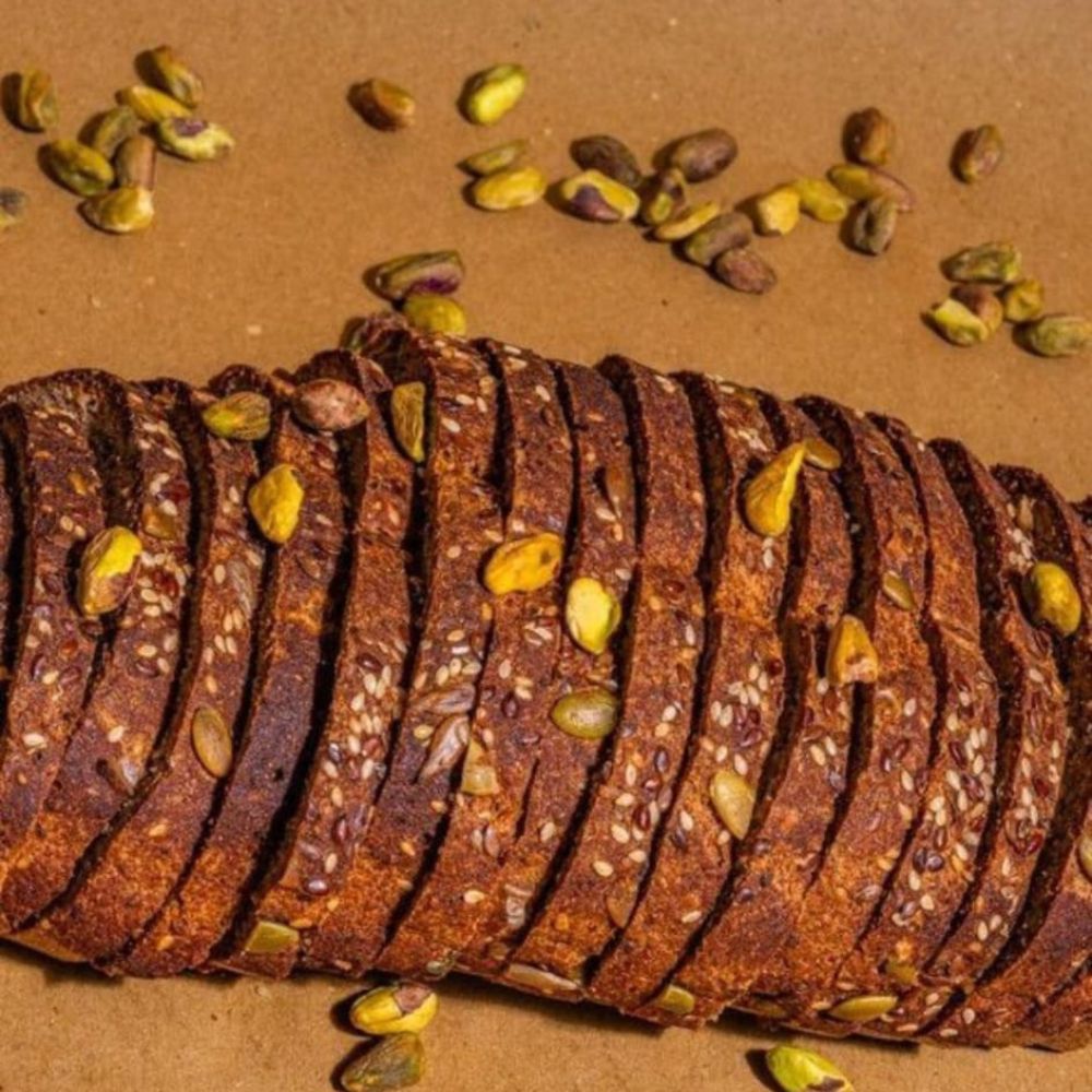 Ro’s Keto Seeds Bread es un pan tipo sándwich, elaborado artesanalmente, principalmente de harina de almendras y coco, con semillas de linaza, chia, cañamo, sésamo, girasol y auyama que potencian su sabor y lo hacen súper nutritivo, leche de almendras, aceite de oliva, sirope de maple, vinagre de manzana (con la madre), polvo de psillio, huevos y sal.