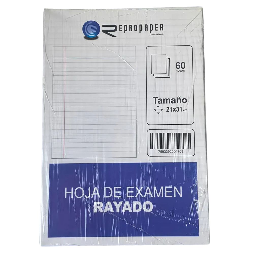Hojas De Examen o Folio Rayado 60 Hojas 21 x 31cm Repropaper